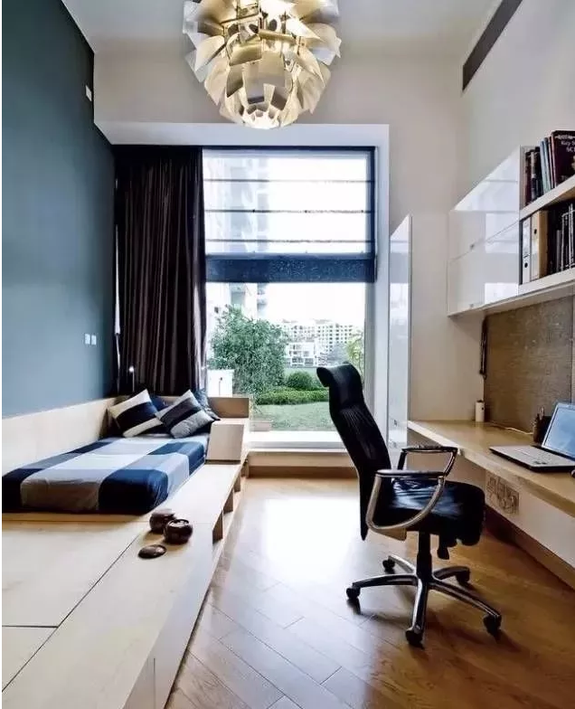 就算家里面積比較大的,也可以利用其中一個房間來做個榻榻米書房,工作累了之后,也能夠有個躺著休息的地方,還能給孩子一個更大的玩??臻g。