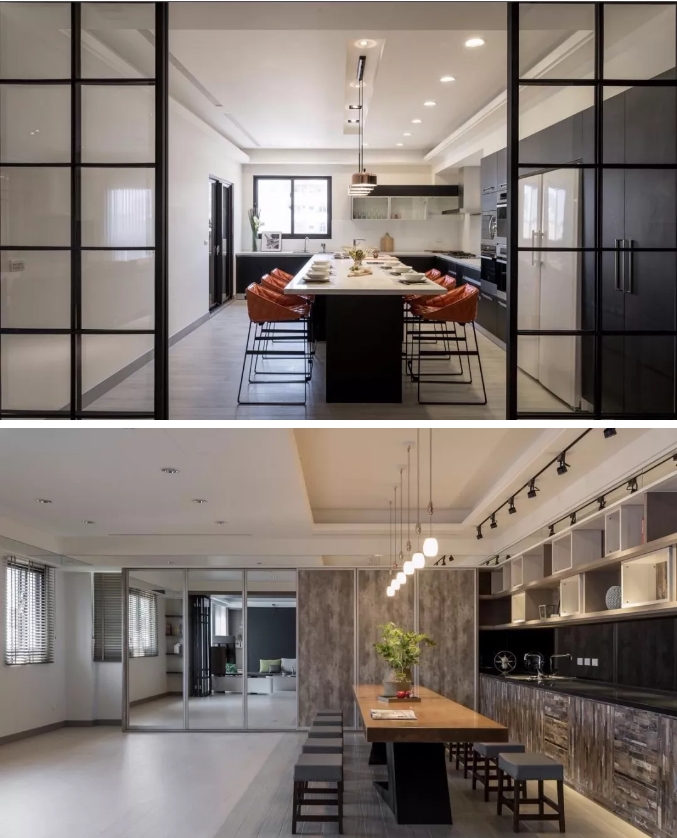 廚房隔斷:廚房生活氣息濃郁,與之匹配的隔斷形式會影響到整個廚房的使用,防水性是廚房隔斷需要重點考慮的,另外還有油煙問題,所以玻璃移動門成了廚房隔斷首選。
