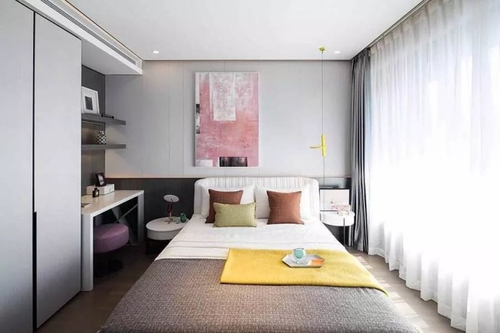 高級灰自帶現代味,天生一副文藝感爆表的“高冷范”。整體簡潔純粹,以免多色間爭奇斗艷,帶來躁動感。用窗簾呼應地毯、沙發等其它軟質家裝的色感,是簡單又保險的做法。