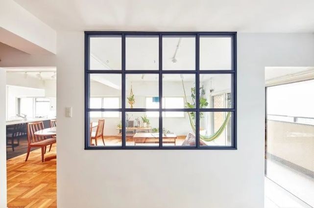 室內(nèi)窗其實(shí)顧名思義,就是設(shè)置在室內(nèi)空間中的窗戶。它能起到一定的采光的功能,但主要還是用來通風(fēng)以及連通空間,讓房間”似隔非隔“。