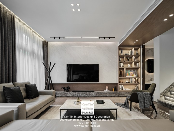 作品用不同程度的灰色來鋪陳出公共空間的層次感,奠定新家大氣高級的基調;用大理石、皮質和原木等不同材質,來雕琢不同空間的質感。設計不止在意空間的表現,更注重居住者的感受。臥室色彩不一,展現不同家庭成員的性格與生活狀態。整體空間尺度把握得非常好,既有滿滿當當的充實感,又有簡約大氣的格調,有加有減,達到了微妙的平衡。