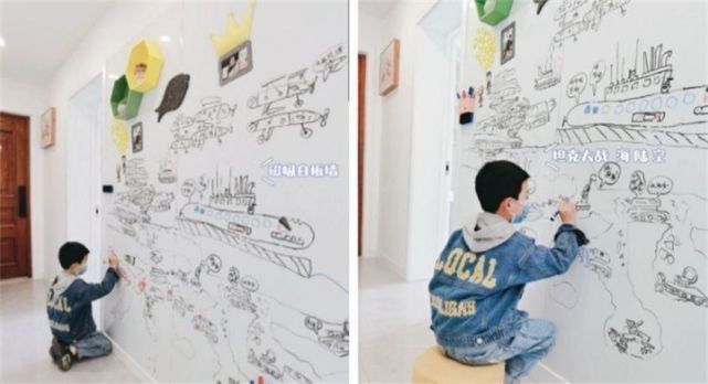 家里有孩子,可將過道墻面打造成涂鴉墻,隨意創作,解放天性。在裝修時記得選用專業的黑板漆粉刷墻體,好打理;或者懸掛磁吸白板,好用又環保。