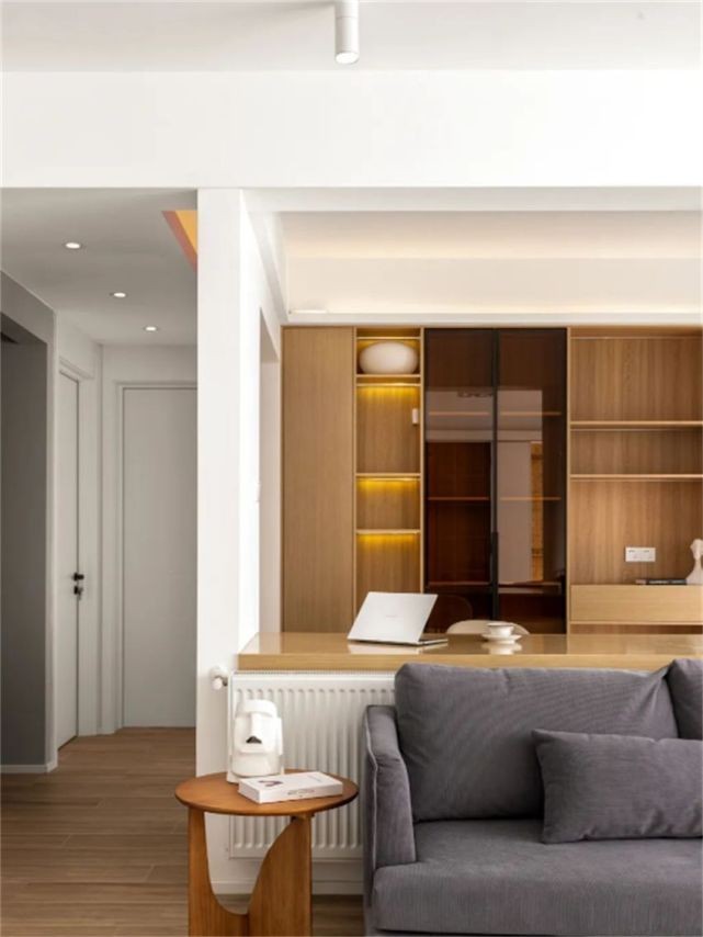 這種柜體深度保持在20-30CM左右即可,而且要確保過道墻體是非承重墻。
