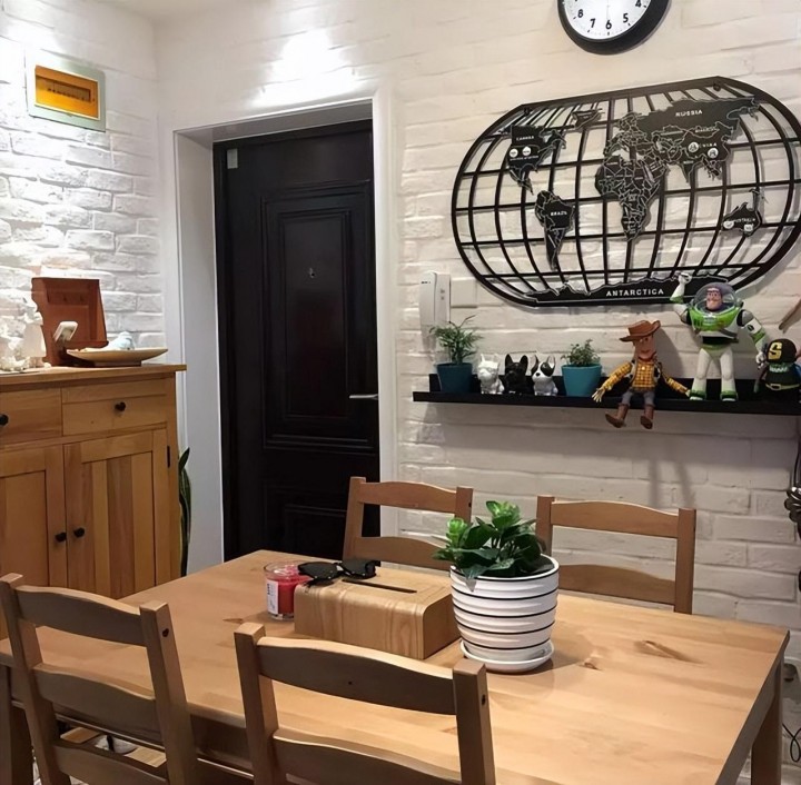 這種情況大多是餐廳和客廳連在一起,打開入戶門,就能從餐廳望到客廳和陽臺。