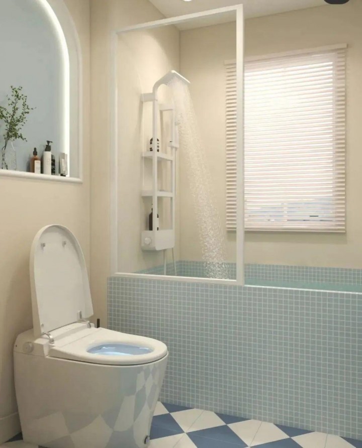 干濕分離分為二分離、三分離、四分離,她采用了二分離,這種裝修方式,能夠將浴室的空間隔開,平時沐浴外頭換衣區,濕氣就不會太重。