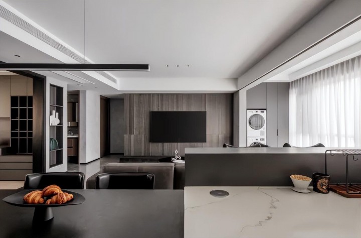 客廳島臺,相比前面幾種的收納,客廳島臺更多是一種隔斷。沙發沒有背景墻的話,增加一個島臺,能有“背靠”感,安全感更強。