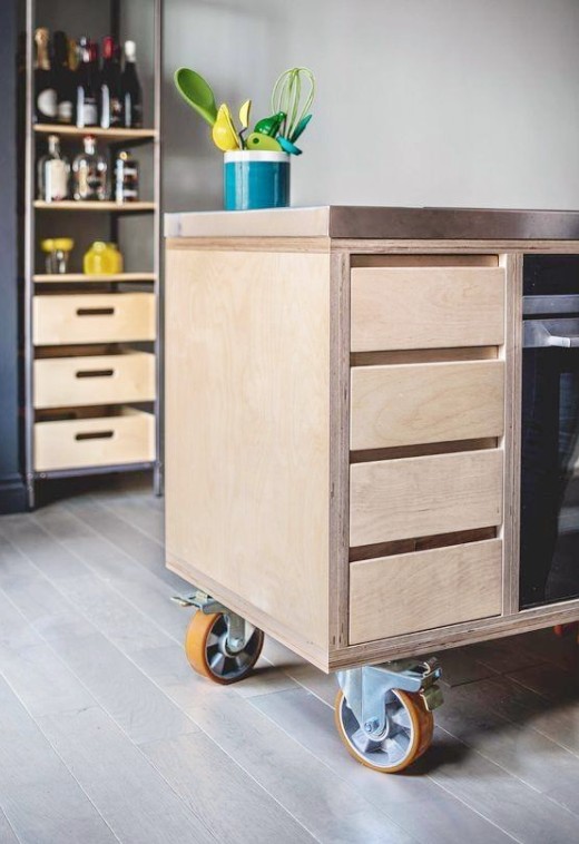 當然,想增加島臺,并不是非得是大廚房,小廚房想要也是可以的。我們甚至可以做成像上面這種可移動的島臺,靈活調整,有時候也可以是一個“餐臺”、“送餐車”。