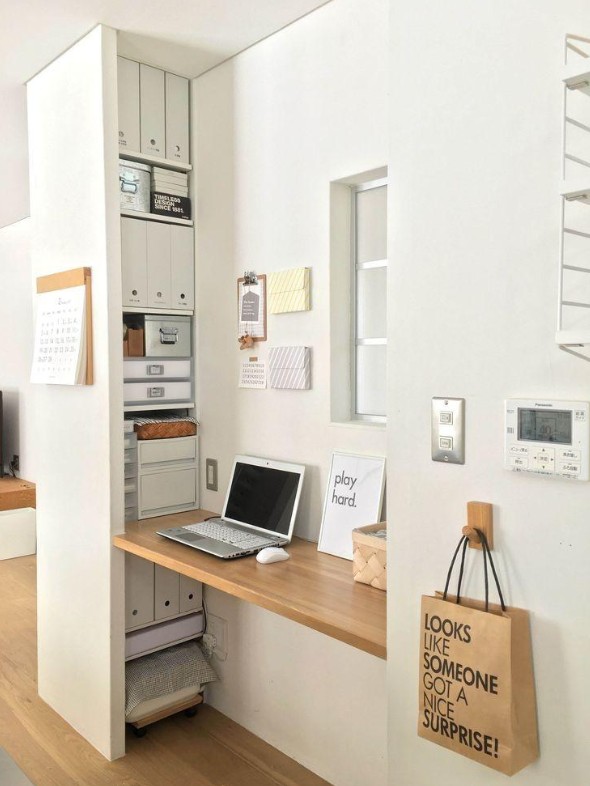 辦公區已經成為一種剛需,再沒有獨立的空間增加書房的話,轉角墻面就成為了一種不錯的選擇。做法簡單,占用的空間也就一個瓷磚寬。