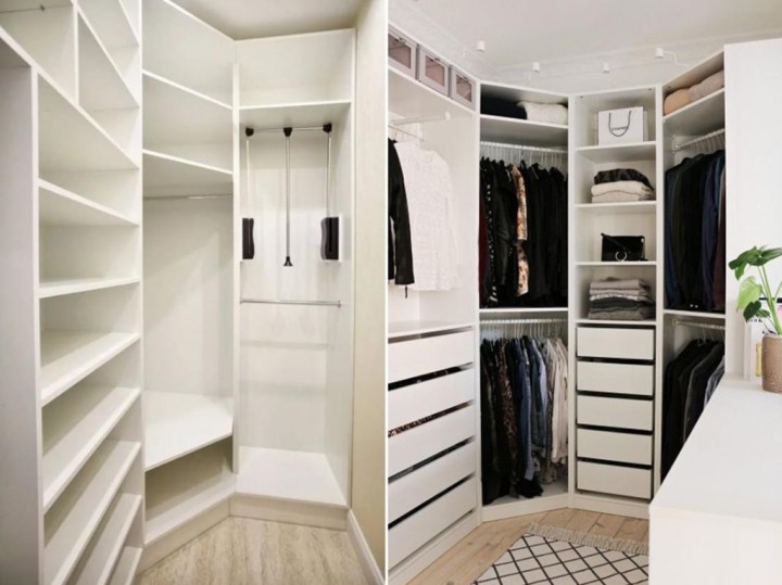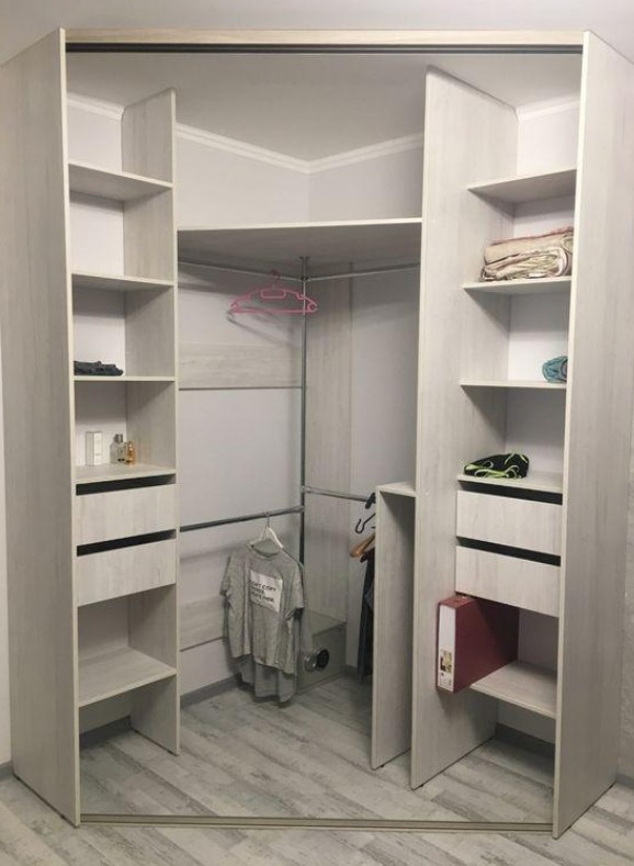 若不然的話,可以做成這樣的轉(zhuǎn)角隔板,擺放上一些書籍、裝飾品都是可以的。