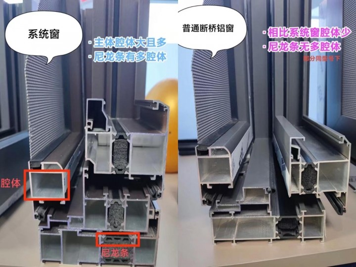 由于系統窗是多腔體結構(斷橋鋁窗是兩腔體),而且在出廠前都要經過嚴格的檢測項目,比如抗風壓性能、空氣滲透性能、雨水滲透性能、保溫性能、隔音性能等等。所以系統窗在各個方面的性能都要優于斷橋鋁窗戶