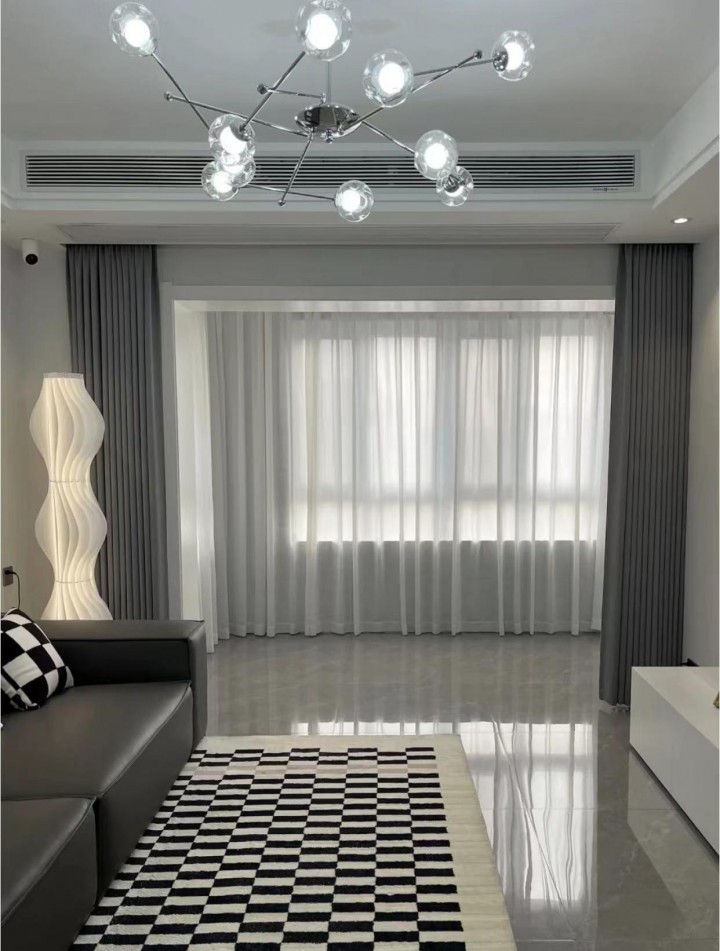 其實這種回型吊頂是最值得借鑒的,一是不會壓縮層高,二是節省成本、縮短工期,美觀度也比較高。而且還能正好將中央空調包進去(女主家裝的是一拖一的風管機空調,造價7000左右)。