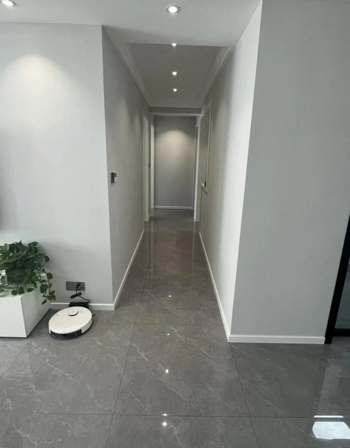 過道拒絕“過度裝修”,沒有裝網紅燈具,也沒有裝磁吸軌道燈,而是簡簡單單安裝了3個筒燈。其實這樣的過道就挺好,成本低,也足夠極簡。