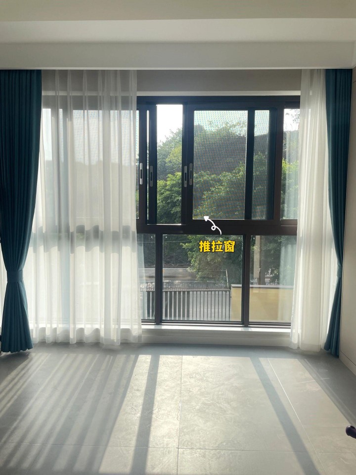 如果想要裝推拉窗,可以選擇現在比較流行的半對開推拉窗,窗戶下半部分和傳統的推拉窗一樣是固定的玻璃,上半部分窗戶采用對開的方式,中間沒有中柱,窗戶全開的效果更通透。