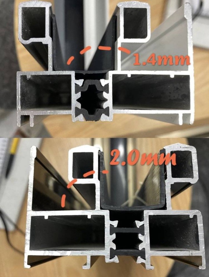 鋁材的壁厚建議外窗選擇1.8mm或以上的,尤其是居住在南方沿海地區或者經常有臺風出現的城市,不應低于這個厚度。高層或者使用大落地窗的住戶也應當以這個厚度為標準,這樣才能確保窗戶穩固。除上述情況外的低層住宅,最好也應當選擇達到1.6mm的型材,低于1.4mm的千萬別考慮。