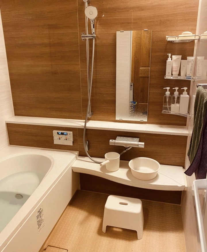 日本的衛生間很小,但是功能齊全,可以說是人性化到了極致。智能馬桶作為浴室標配就不用多做介紹了,簡單和大家說說他們的整體浴室。