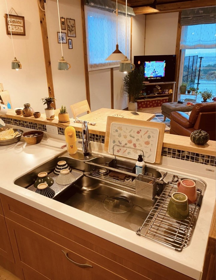 還有日式大單槽是真的很靠譜,洗鍋無壓力,水過不留痕。水槽可以搭配各種配件,比如瀝水籃、小菜板等等,滿足多種功能需求。搭配抽拉式水龍頭,360°隨意沖洗,完全沒有衛生死角。水槽下水口很大而且是階梯式排水,不易堵塞,而且下水管位于櫥柜的側邊,而非正中央,因此下方櫥柜空間可以得到合理利用,非常便利。