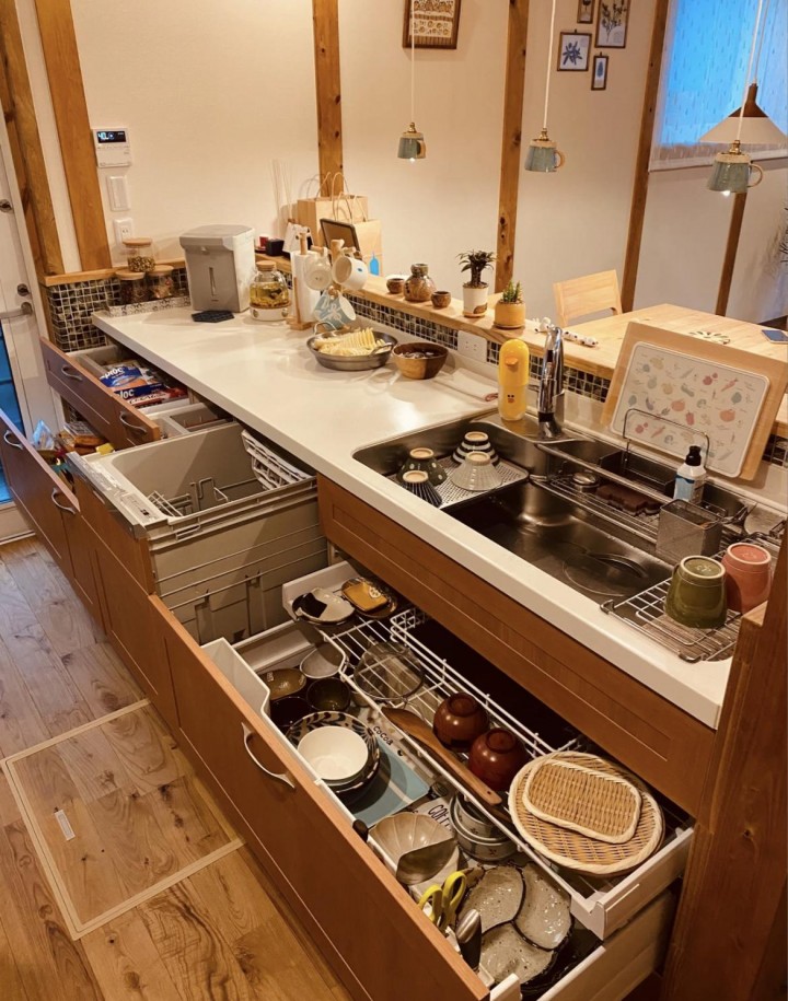 日本的廚房總是給人一種整潔干凈絲毫不凌亂的樣子,這不僅僅歸結于日本主婦善于收納,同時也和他們的廚房設計有關。