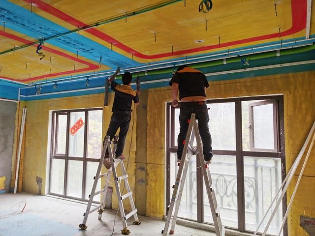 1、按照居室設(shè)計圖和客戶具體需求進(jìn)行水電走向的設(shè)計。工人按走向進(jìn)行墻面或地面開槽。埋入管線(包括布線和接好管道)和暗盒。