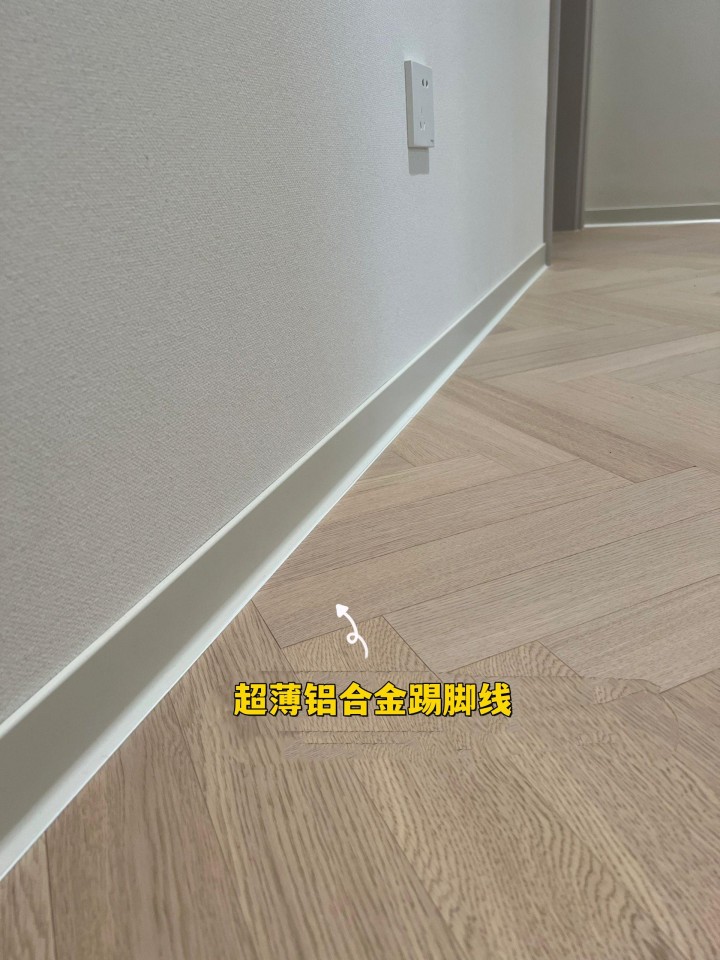 塔塔建議:墻面可以選擇超薄鋁合金踢腳線,顏色和墻面相近即可,不僅耐用,而且顏值也很高。