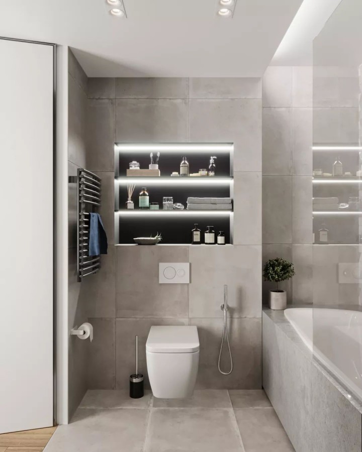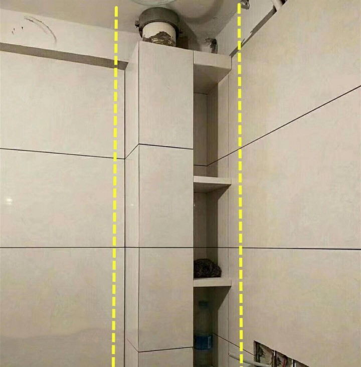 再說(shuō),做壁龕也不是想象中那么容易的,有的師傅沒(méi)有事先預(yù)量好尺寸,甚至還會(huì)出現(xiàn)打穿墻體的情況,有的則因?yàn)槭炙嚥患眩龀鰜?lái)的壁龕效果慘不忍睹:高度不夠放沐浴露、夾層的隔斷太厚且笨重、瓷磚縫對(duì)不齊顯得粗糙不精致、沒(méi)有提前做好坡度導(dǎo)致壁龕內(nèi)積水難打理......各種的翻車情況讓你徹夜難眠。