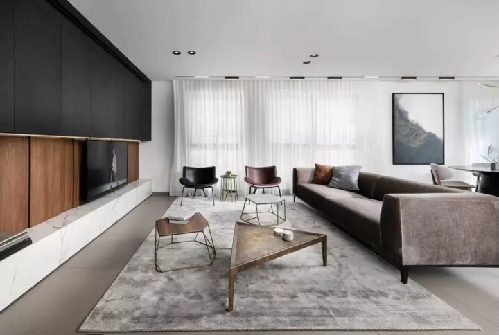 客廳動線是家居設(shè)計的重中之重,安排時要注意動靜分區(qū)。一般情況下,如果客廳放置電視,那么沙發(fā)擺放處設(shè)定為靜態(tài)活動區(qū),沙發(fā)和電視墻之間則為動態(tài)活動區(qū)。