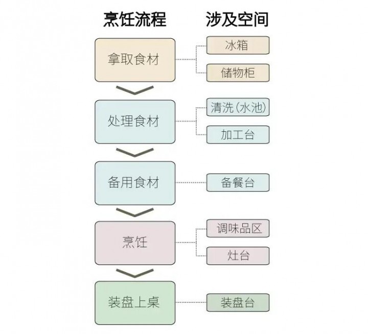 ①家務(wù)動線:做家務(wù)時產(chǎn)生的活動軌跡,涉及廚房、餐廳、衛(wèi)生間、陽臺等經(jīng)常要做家務(wù)的空間;