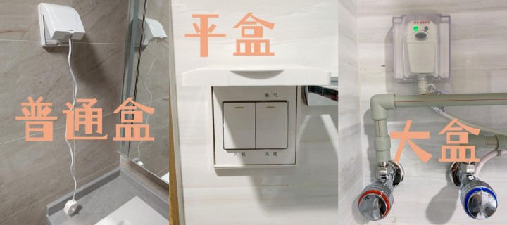 衛生間里的所有開關插座,都需要安裝防水盒。開關建議選平防水盒,不會向外突出,視覺感、空間感都要更好一些。