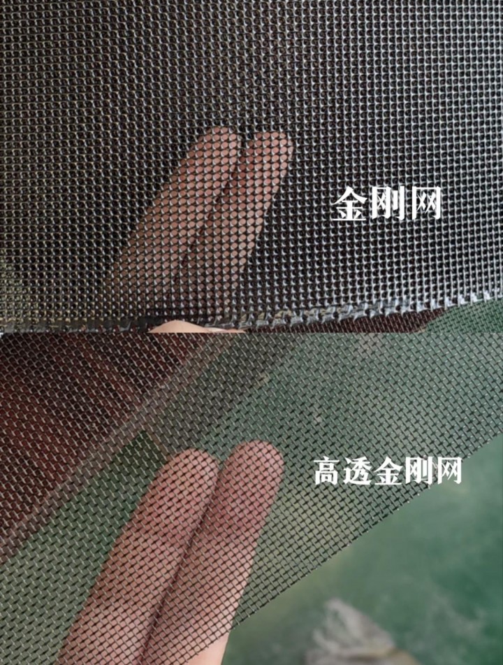 比如說高透網,它是金剛網的升級款,近兩年比較流行。采用編織工藝織造,網孔僅有1mm,防蚊能力自然更強,它比金剛網更輕更薄,在透光透氣性上都更為突出。