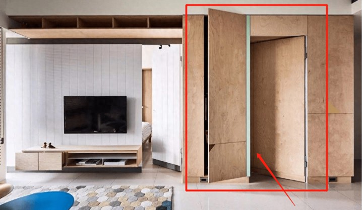隱形門的設計讓房門和墻融為一體,看起來簡約大氣。但是隱形門的施工要求特別高。如果板材選的不好或工人沒做好,就會特別突兀。