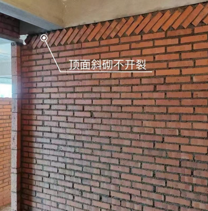 頂部斜砌可以大大的減弱磚墻的沉降作用,有效避免拉裂。
