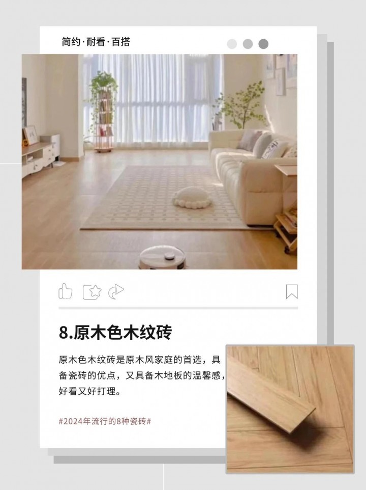 小青庭提醒,2024年流行的這8款瓷磚顏色,不僅在視覺上滿足了人們對美的追求,更在實用性上考慮了不同家庭的需求。無論是追求簡約現代的風格,還是溫馨自然的原木風,這些瓷磚都能為家居空間增添一份獨特的魅力。隨著家居裝修的不斷進步,我們有理由相信,這些流行趨勢將會引領更多的家庭走向個性化和舒適化的道路。
