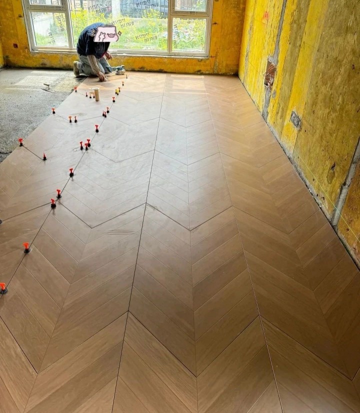 ▲木紋磚一定要做成類似木地板的規格,并且按照木地板的鋪法進行施工,后期完成才可以達到與木地板一模一樣的效果。