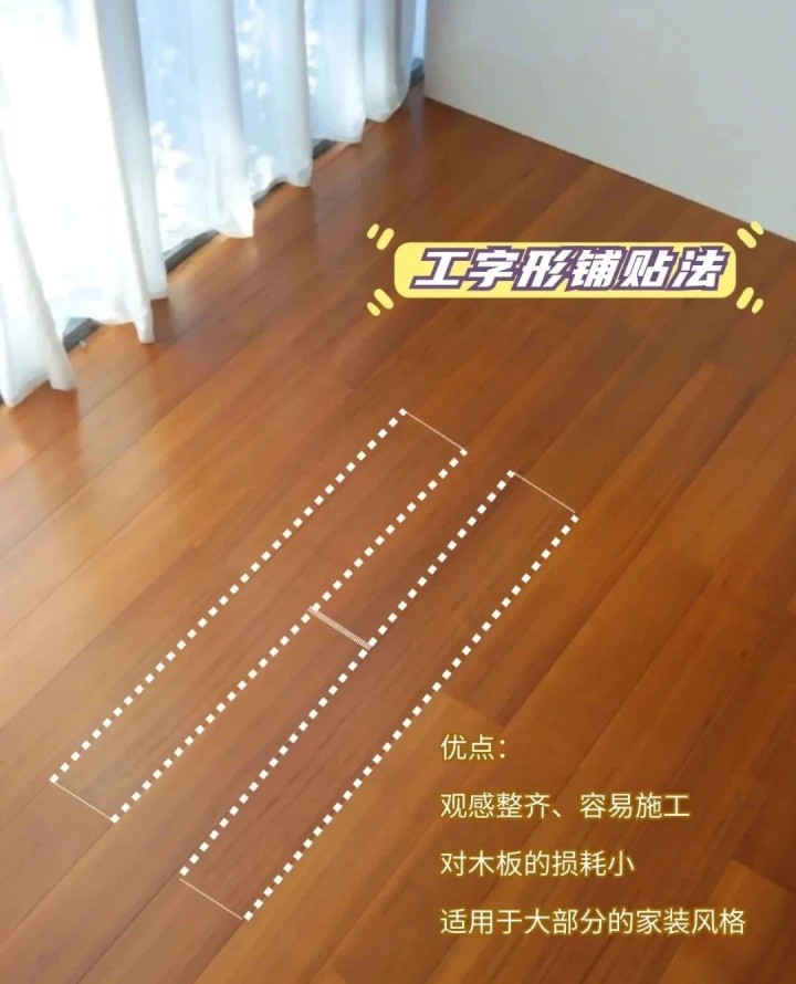 ▲工字拼也是一種常見的施工方法,觀感整齊、易于施工,且對木板的損耗較小,性價比也不錯。