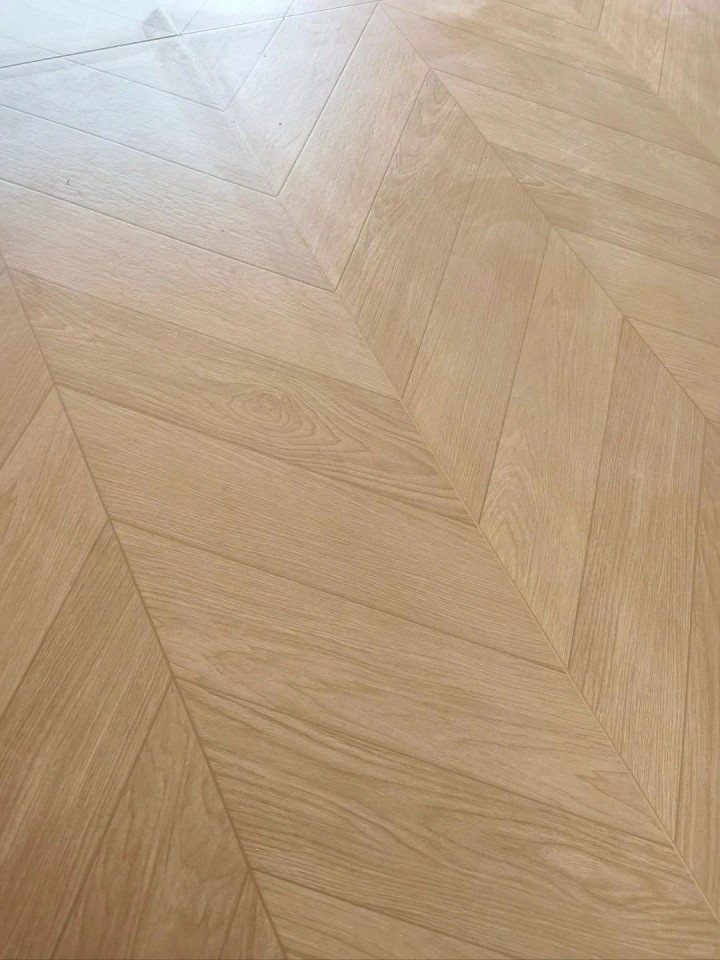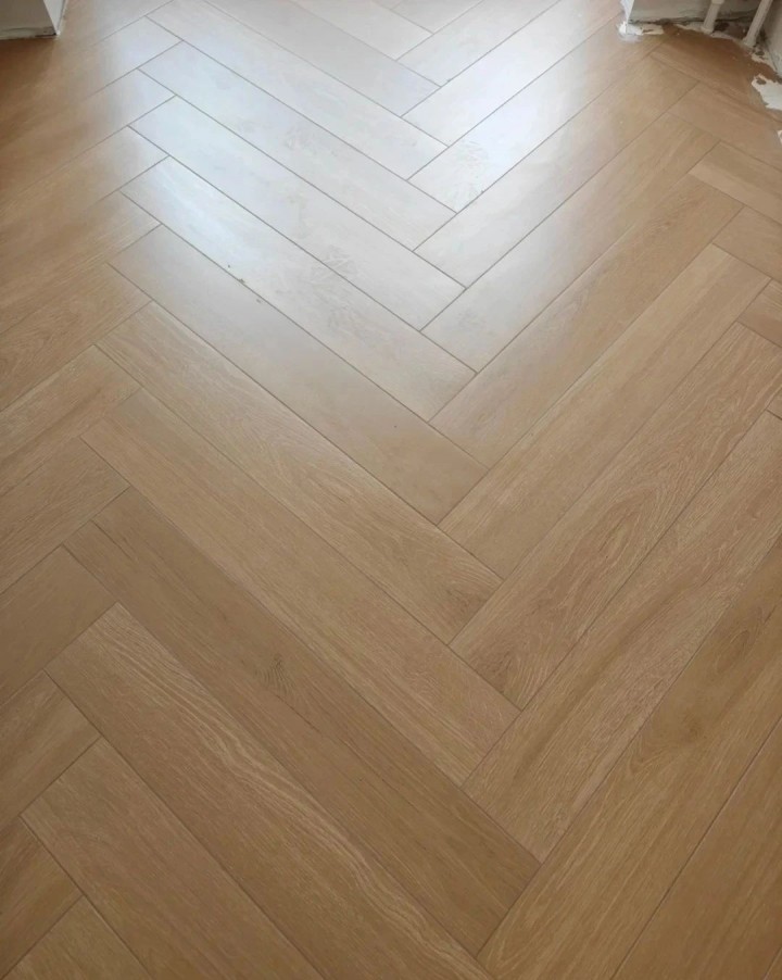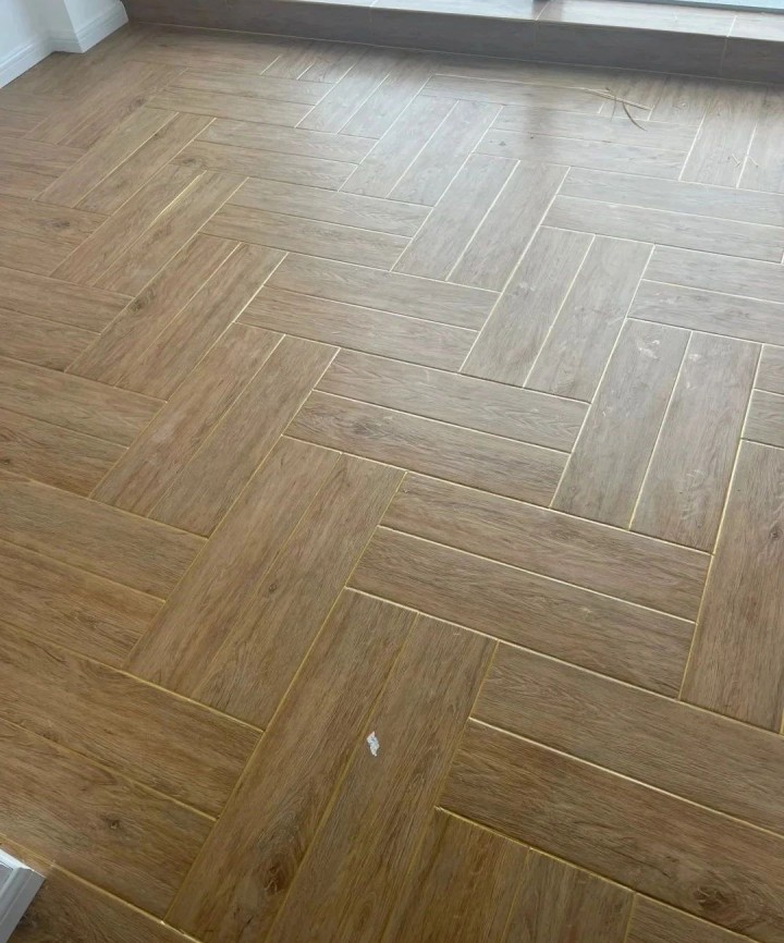 ▲人字拼的木紋磚為長方形,其每塊磚頂端的拼接呈90°,且錯落有致。人字拼在視覺上有擴大空間的效果,能使小戶型顯得更為寬敞。然而,相比上上面兩種鋪貼方式,人字拼的鋪貼工藝較為復雜,因此工費相對較高。