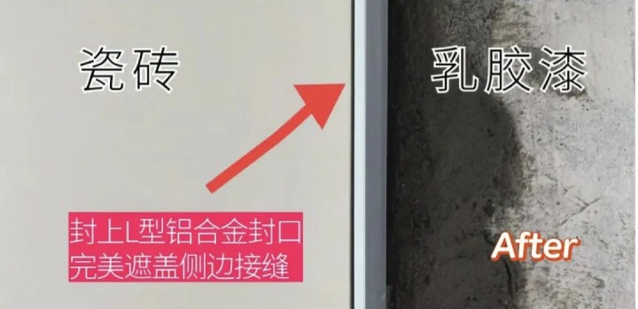 在涂刷乳膠漆時,在瓷磚和乳膠漆交界處留出一定的縫隙,然后使用美紋紙或其他遮蓋材料進行保護,最后再涂刷乳膠漆。這樣可以形成一個自然的過渡,減少收口的難度。
