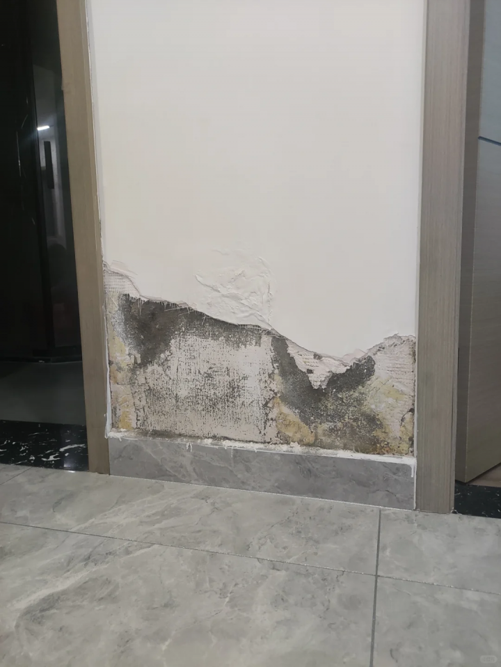 衛生間門口墻面反堿還有一個原因就是做防水的時候,衛生間門口沒有做攔水壩。