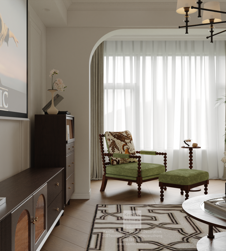 走進中古風格的空間,仿佛穿越回上世紀中期。復古藤編的休閑椅、泛著金屬光澤的黃銅燈具,搭配圓潤的弧形拱門與波浪形家具,將那個時代的經典元素完美復刻。大地色系的墻面與幾何圖案的地毯相互映襯,既有歲月沉淀的韻味,又充滿復古與摩登交織的獨特魅力,讓家成為承載懷舊情懷的溫暖港灣。