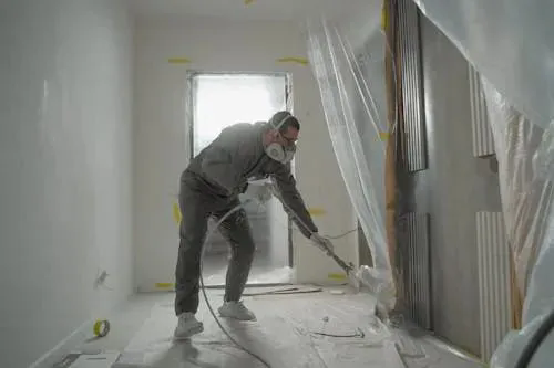 對施工環境要求高:噴涂必須在較為封閉的環境下開展,這樣才能避免漆霧飄散至其他區域而造成污染。與此同時,施工現場需要具備良好的通風條件,以便讓漆霧能夠快速排出,從而降低對施工人員健康的影響。對于一些已經裝修完畢的房間或者有家具擺放的場所而言,噴涂可能會帶來比較大的麻煩,需要進行大量的保護措施。