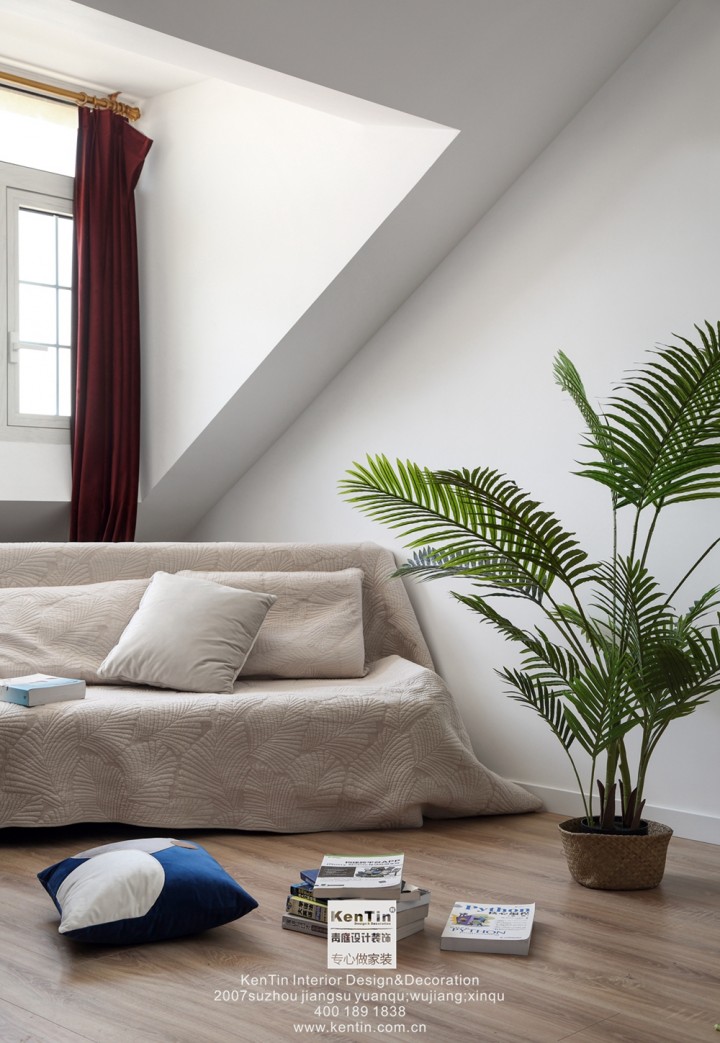 屋主希望自己的房子采光充足,明亮、實用、個性。考慮到這些因素,白色元素是一樓墻面和櫥柜最多運用的色彩。簡單,時尚,清爽,自由。