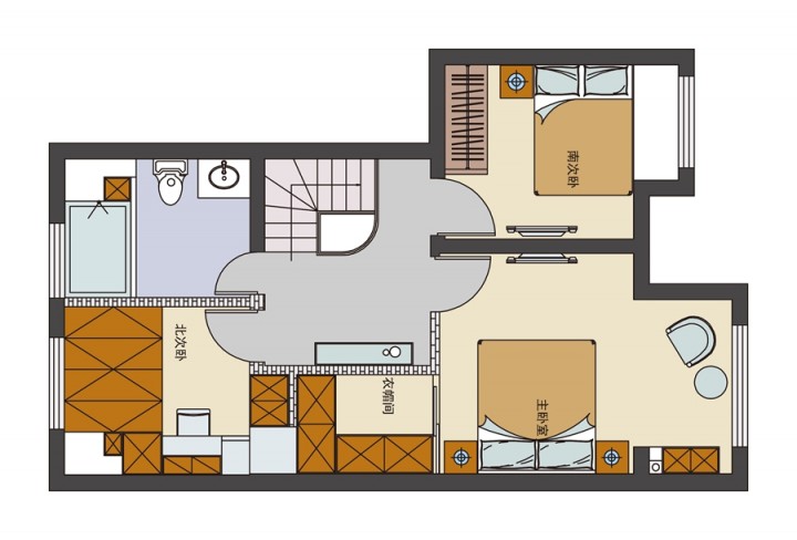 整體色調(diào)和客餐廳一樓區(qū)域相融合。暖空間,簡(jiǎn)色調(diào)。生活就是這樣,不繁復(fù),剛剛好。