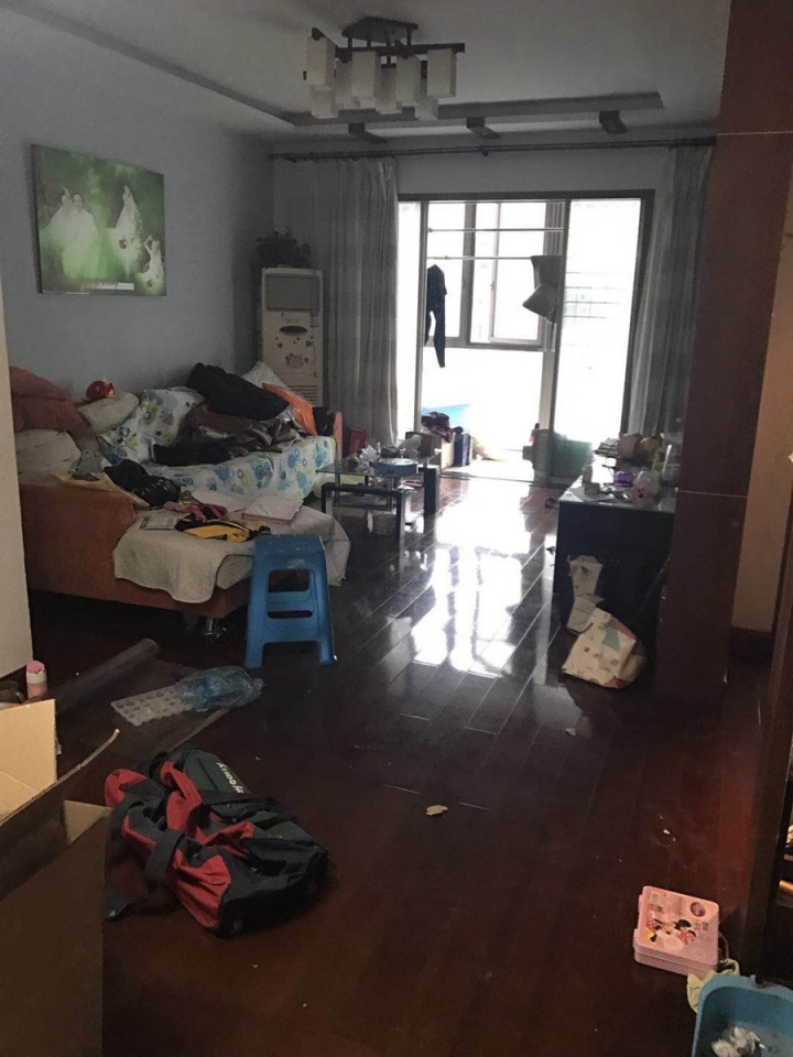 進門處鞋柜顏色古老而深沉,沒有一點年輕的朝氣,上面擺滿了鞋子、袋子、瓶子等各種舊物。門口的玄關柜,因為垃圾和孩子亂扔的水彩筆,顯得很雜亂。