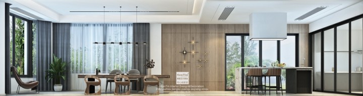 餐廳分出兩個(gè)區(qū)域,大理石島臺(tái)靠近廚房,原木背景墻溫馨自然。日常端一杯飲料小憩,晨起在這里享用早餐,窗外美景,桌上美食,治愈胃,更治愈心。