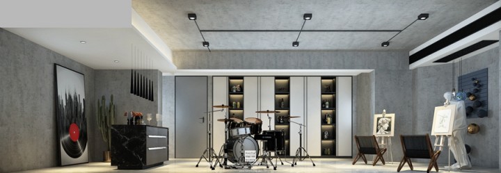 偏工業(yè)風(fēng)的地下室空間專門為女兒量身打造,詮釋女兒灑脫的個(gè)性。墻面紋理粗糙,彰顯自然本色;富有藝術(shù)氣息的擺件掛畫都與藝術(shù)少女相得益彰。在這里,孩子可以奏樂畫畫,享受興趣的美好。